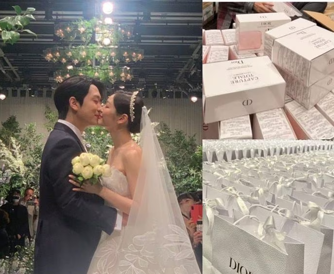김연아 고우림 님의 결혼식에 하객 선물로는 20만원 상당의 디올 제품을 선물로 주었다고 하는데요. 역시 클라쓰가 다른 결혼식. 또한 김연아 님이 입은 본식의 드레스는 레바논 출신 디자이너 엘리 사브의 2023년 봄 컬렉션 작품으로 귀족들에게 인기있는 최고의 드레스로 손예진, 수현 님등이 입어 화제를 모은 드레스라고 합니다. 2부 드레스는 이스라엘 브랜드 차나 마를루스 제품이라고 합니다.