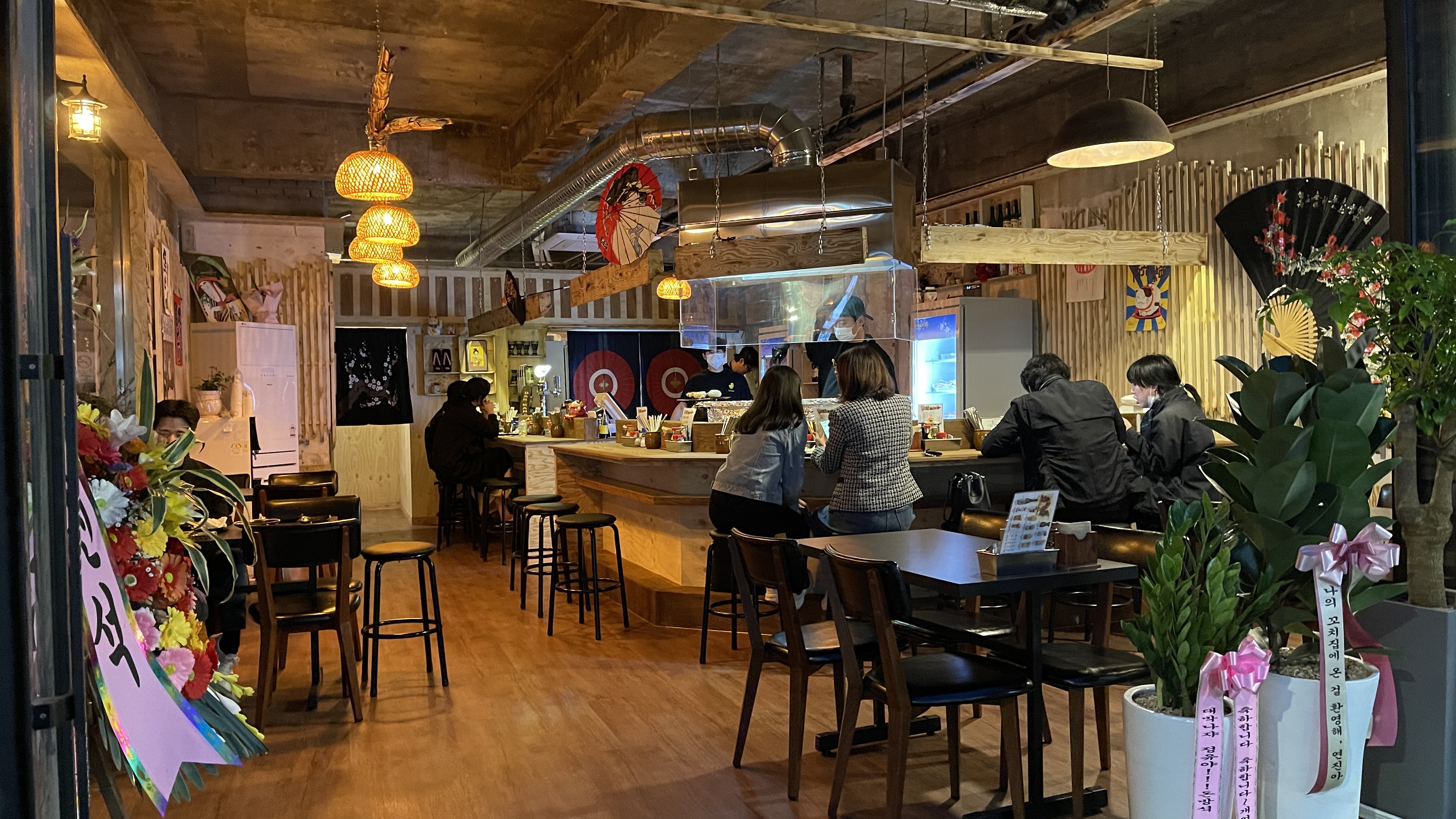 일단 내부는 매우 깔끔했어요. 바 테이블이 있었고, 꼬치 굽는 것을 구경할 수도 있는 인테리어. 그리고 테이블 자리도 있었는데, 저희는 테이블 자리에 자리했습니다.