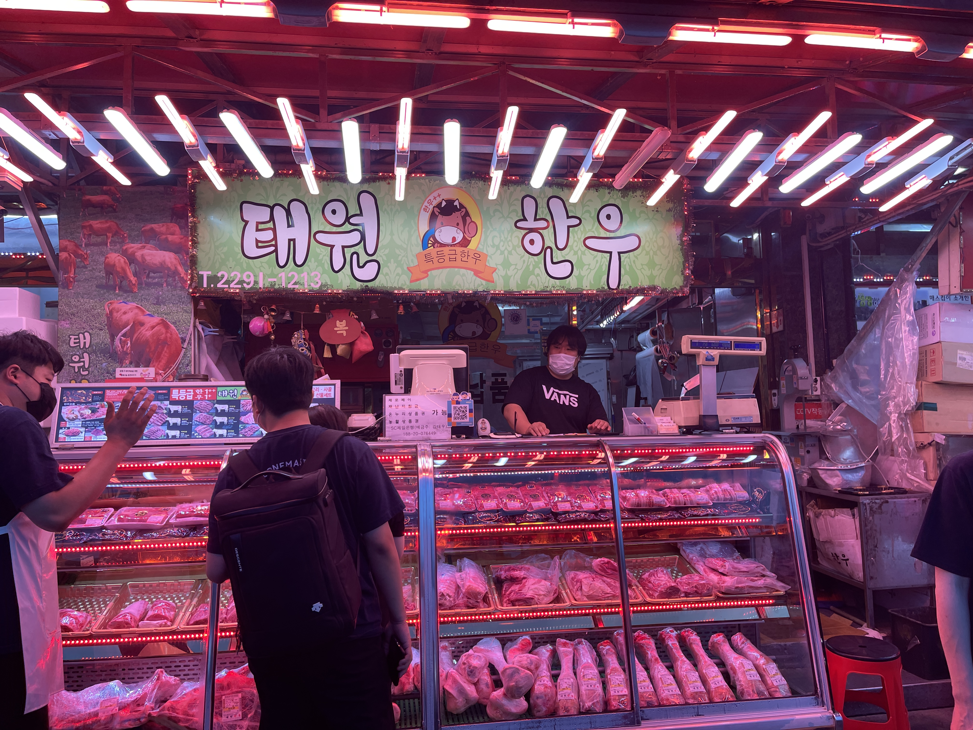 저희는 태원한우에서 고기를 구매했어요! 워낙 마장동에서 유명한 집이더라구요~ 축산물 시장 안에도 많은 정육점들이 있었는데 도전이 약간 두려워서 잘 알려진 루트를 이용했어요~ 바로 태원한우+인생한우 조합~! 그게 뭐냐면요?!