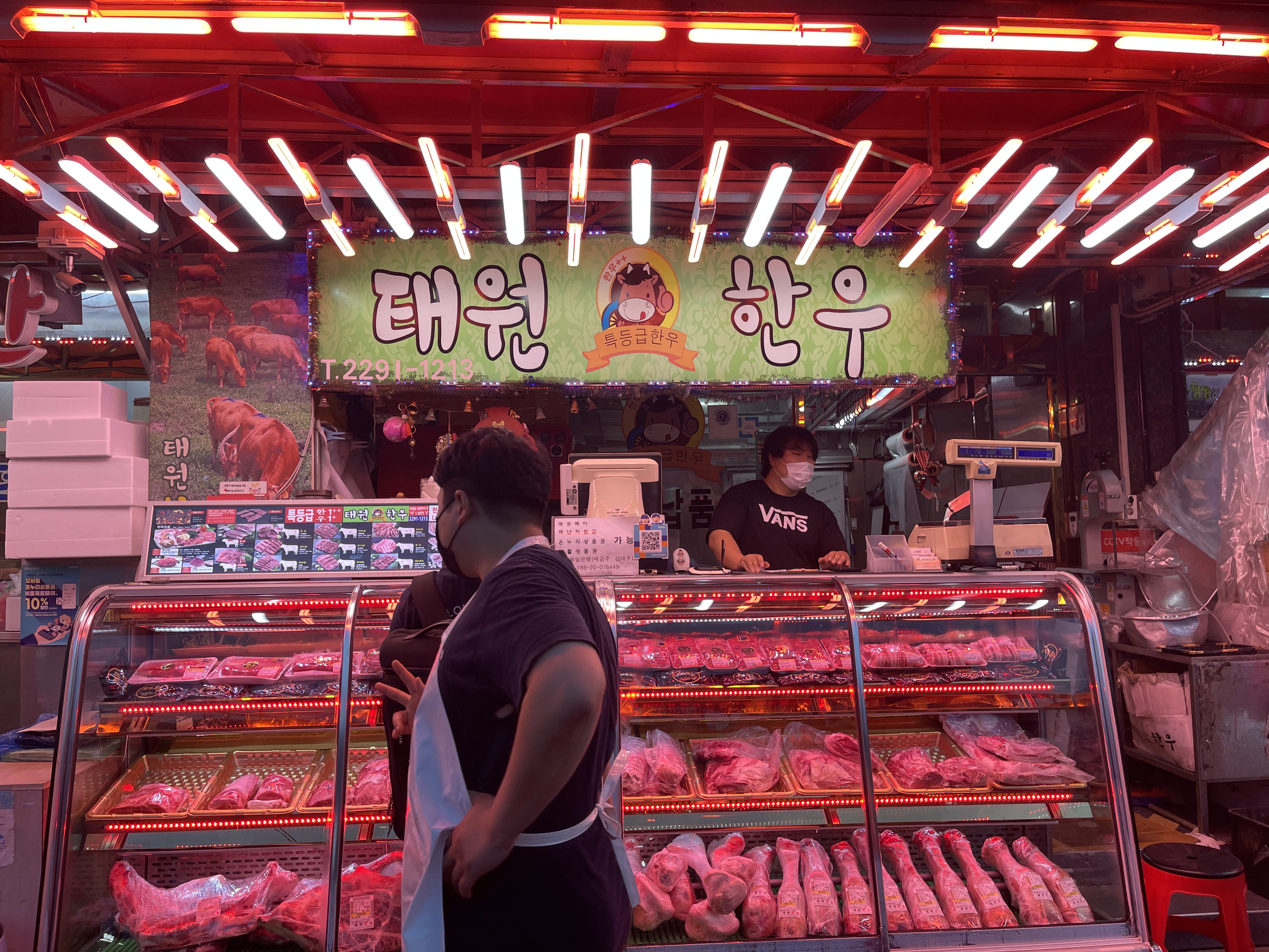 저희는 태원한우에서 고기를 구매했어요! 워낙 마장동에서 유명한 집이더라구요~ 축산물 시장 안에도 많은 정육점들이 있었는데 도전이 약간 두려워서 잘 알려진 루트를 이용했어요~ 바로 태원한우+인생한우 조합~! 그게 뭐냐면요?!