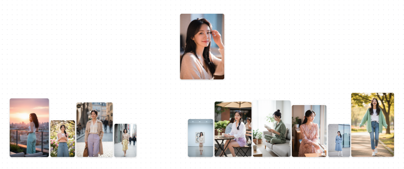 쇼핑몰 사장님이나 패션 일러스트레이터를 위한 프롬프트입니다. 한 명의 모델에게 다양한 코디를 입히는 구성을 요청합니다.
