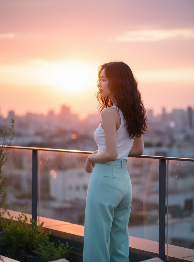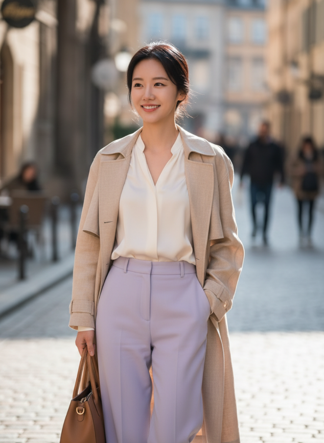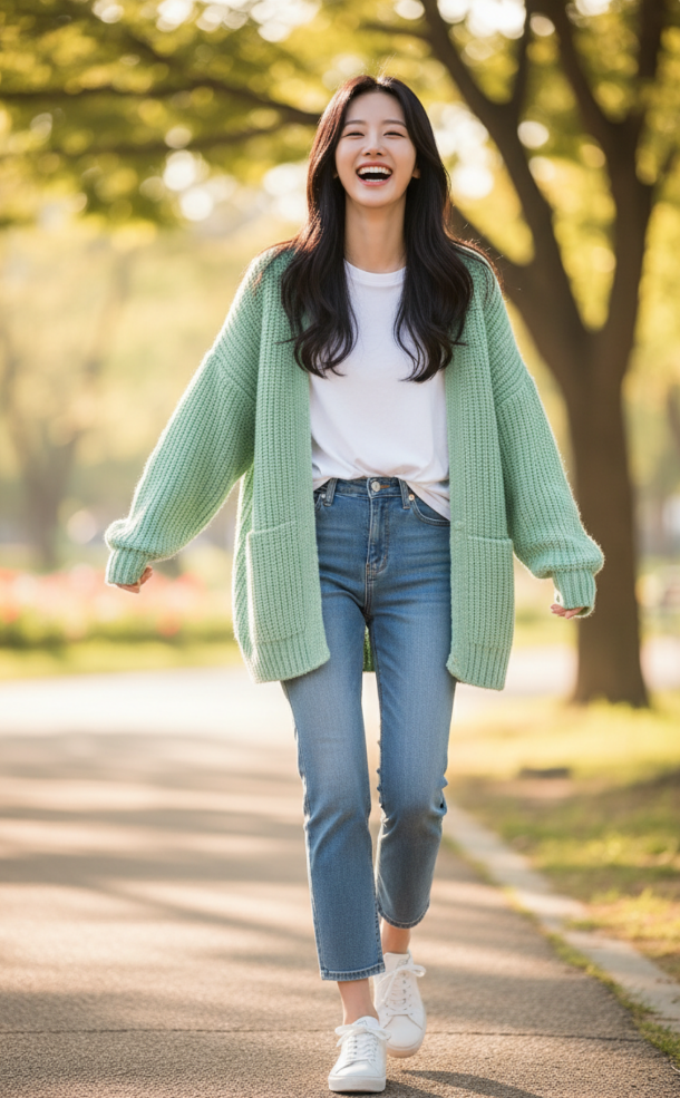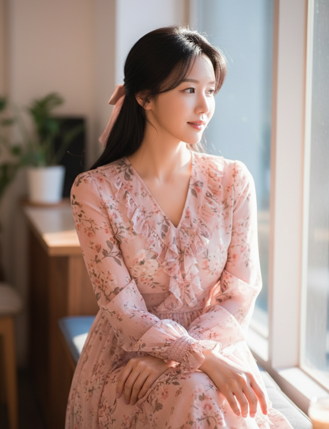 전체적인 톤은 '파스텔 & 소프트'로 유지하되, 서로 다른 의상 스타일(원피스, 데님, 슬랙스 등)과 헤어스타일을 적용한 이미지 생성용 프롬프트 10개를 영어로 작성해 줘.