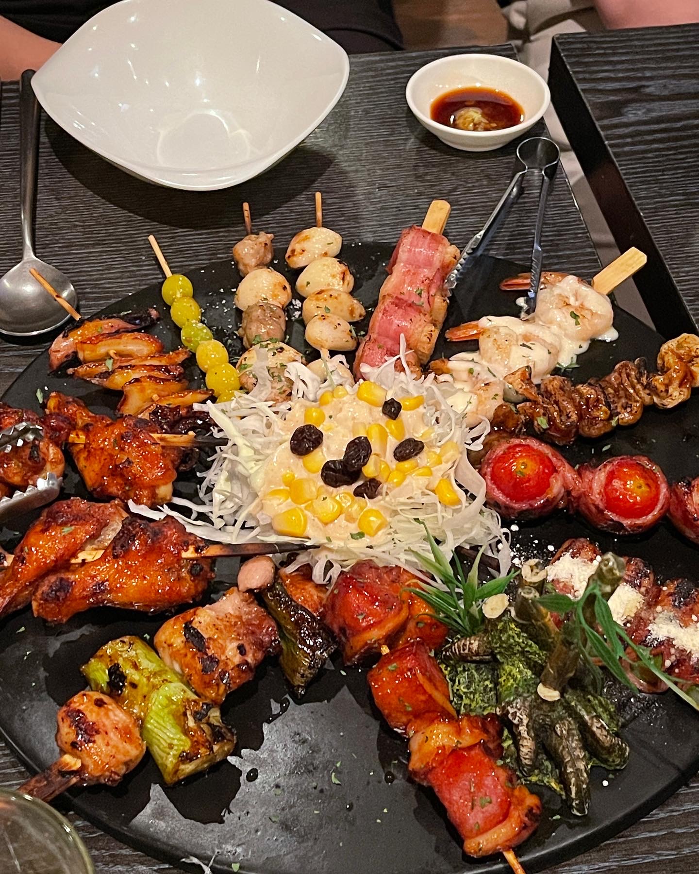 그리고 꼬치구이 맛집 답게 모듬꼬치 비쥬얼이 환상이었어요! 나오자 마자 그냥 막 집어 막는 친구 때메 몇 칸 비어버렸네..