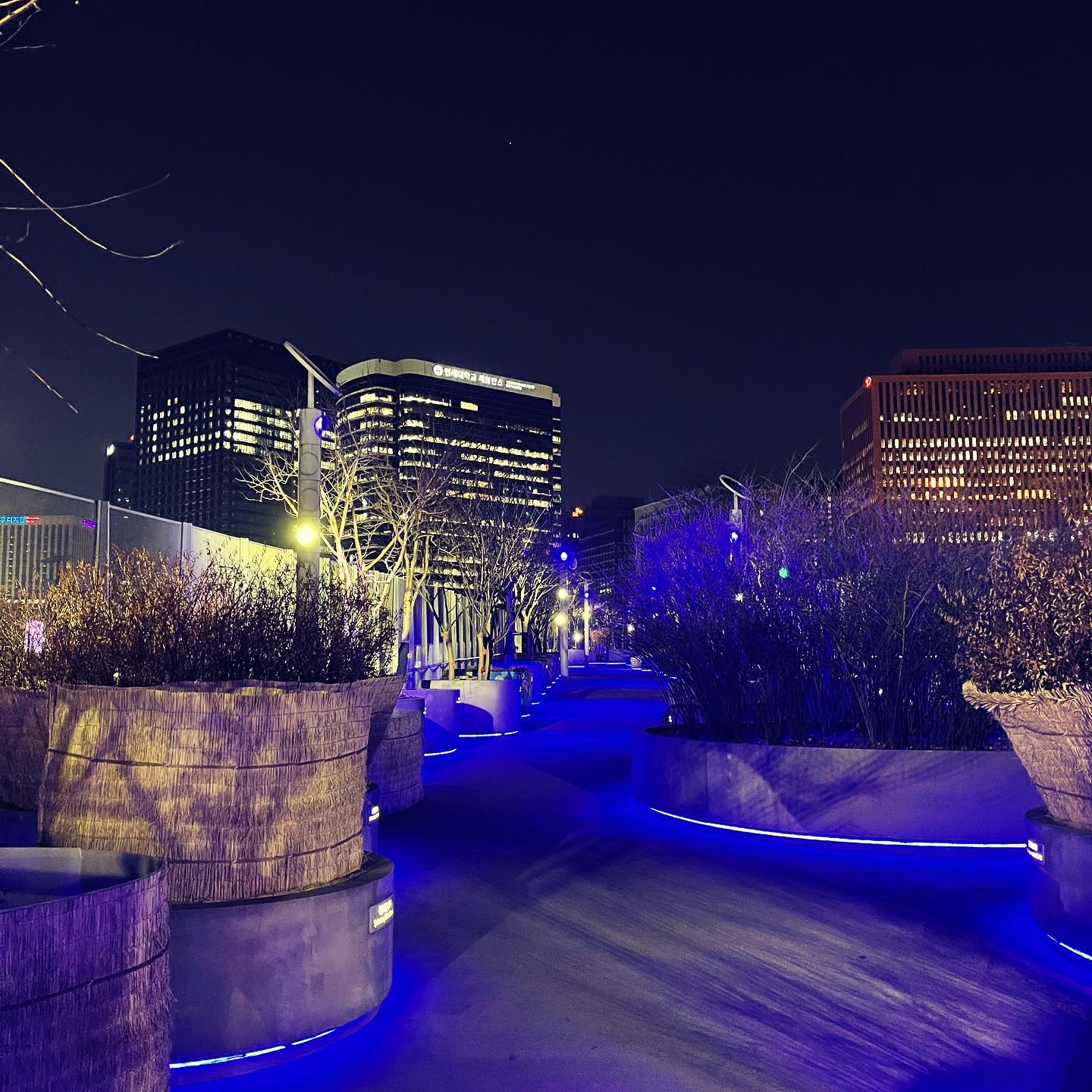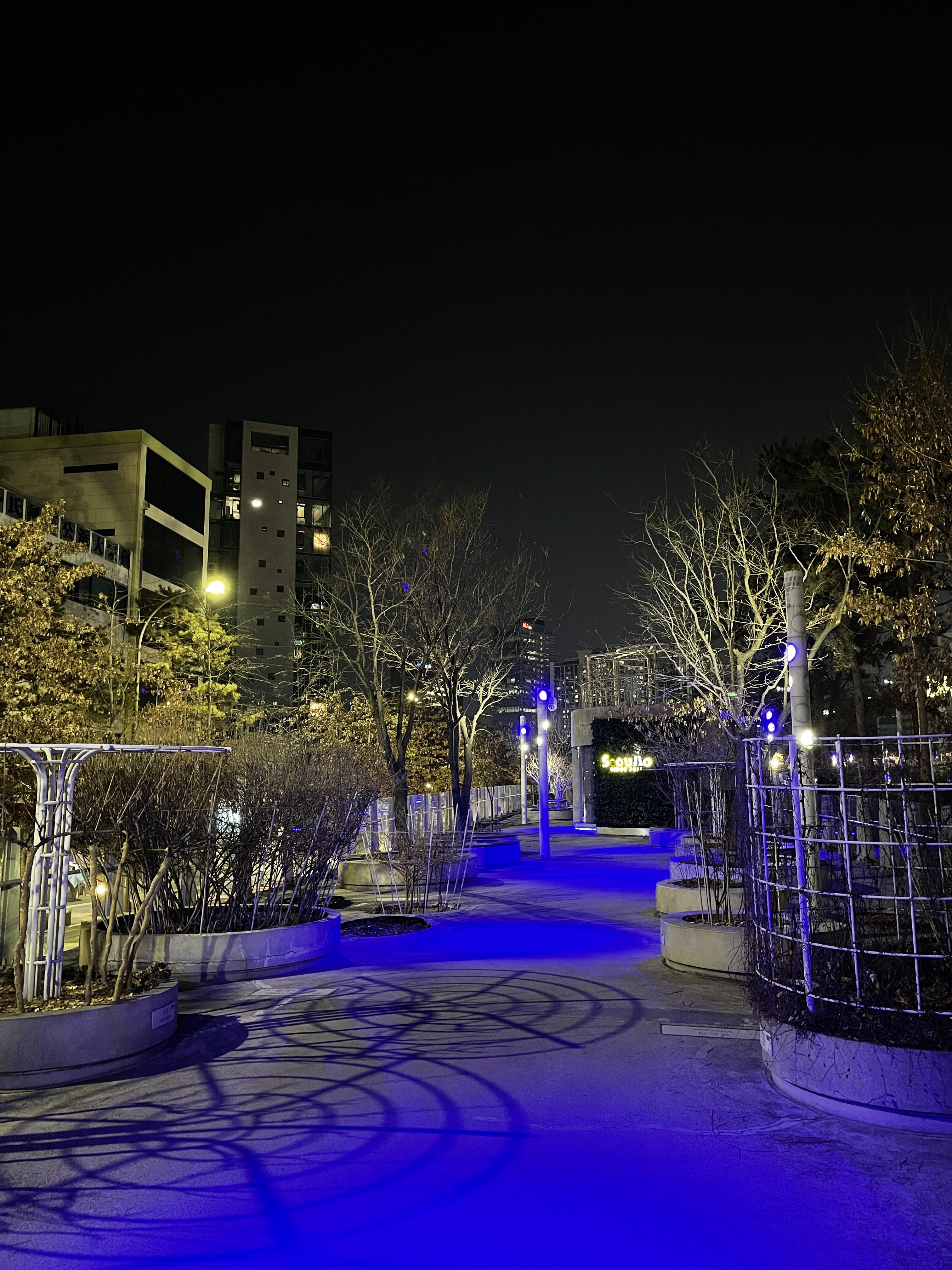또 다른 산책로와는 다르게 시기별로 조경이 많이 달라지는 곳이기도 해요~! 자연 산책로는 그곳에 있는 수목이 거의 몇십년 그대로 있곤 한데 서울로 같은 경우에는 수시로 조명에 대한 변화와 수목의 변화가 더 자주 이루어지는 것 같은 느낌!