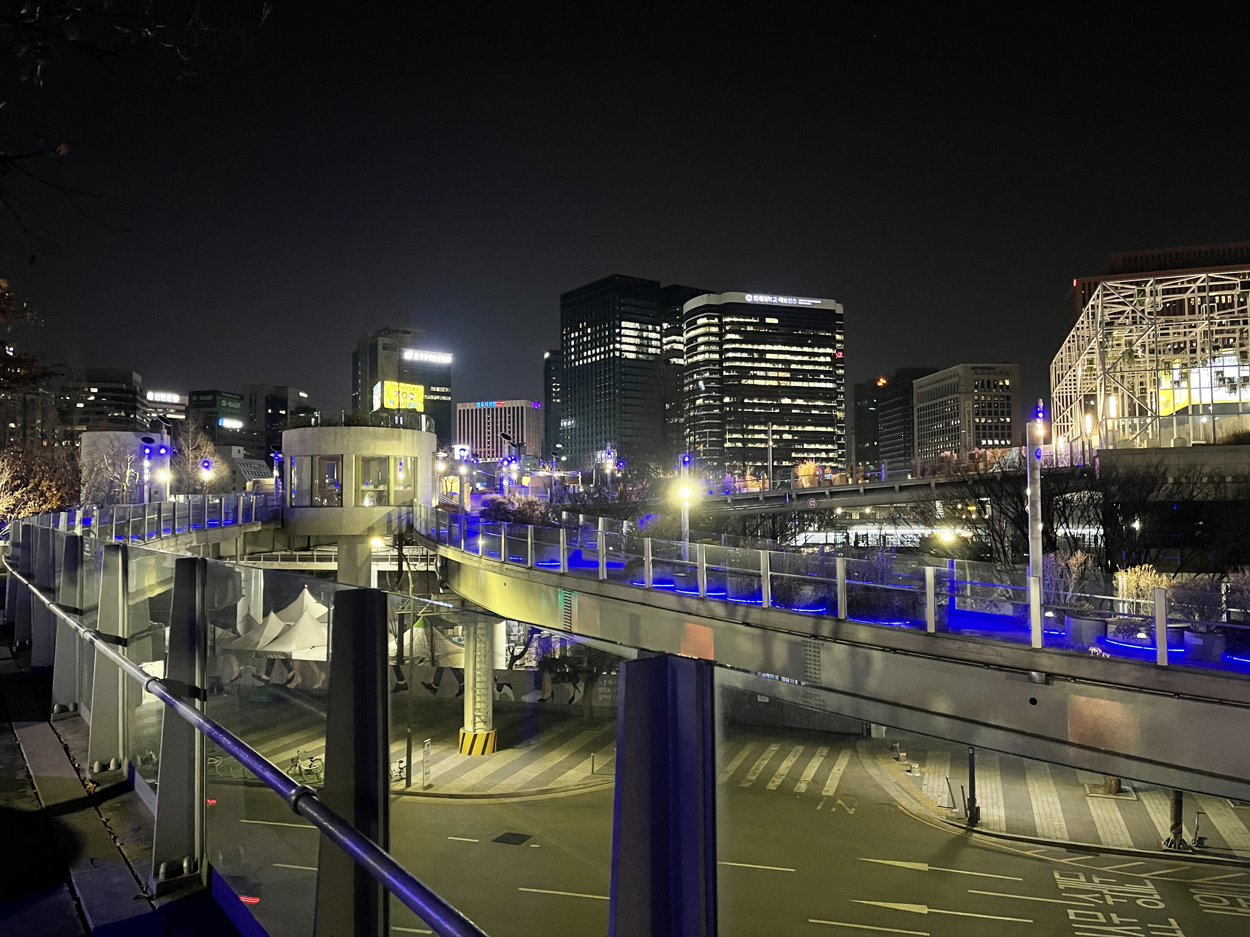 엄청 높은 곳에서 아래를 내려보는 느낌은 아니지만 하늘 위를 걷는 느낌을 주는 고가도로 위를 걷는 거라 기분이 꽤나 좋아진답니다
