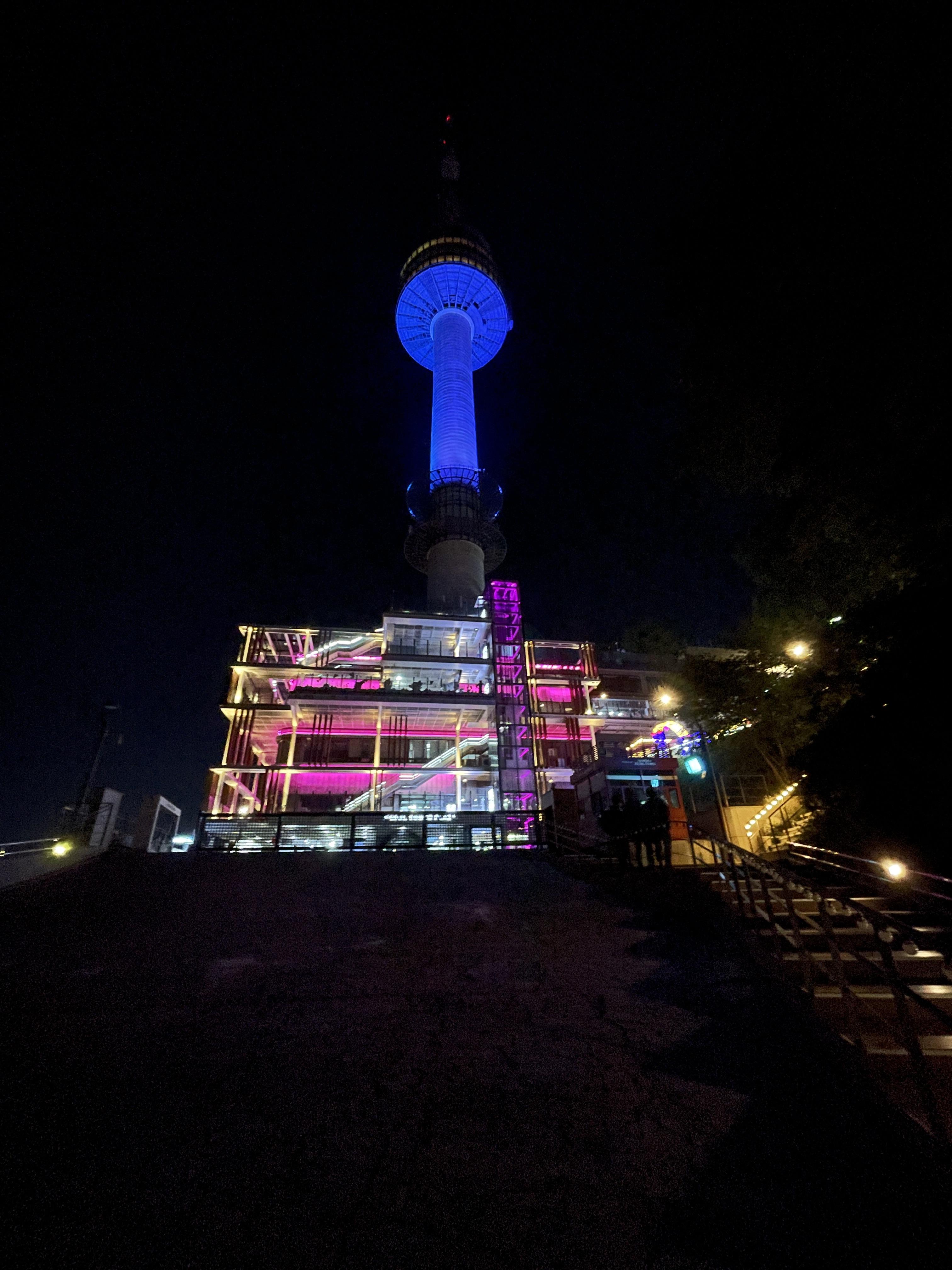 조명이 빨간색으로 빛나기도 하고 파랑으로 빛나기도 하고 올라온 보람이 있는 장관의 n서울타워!