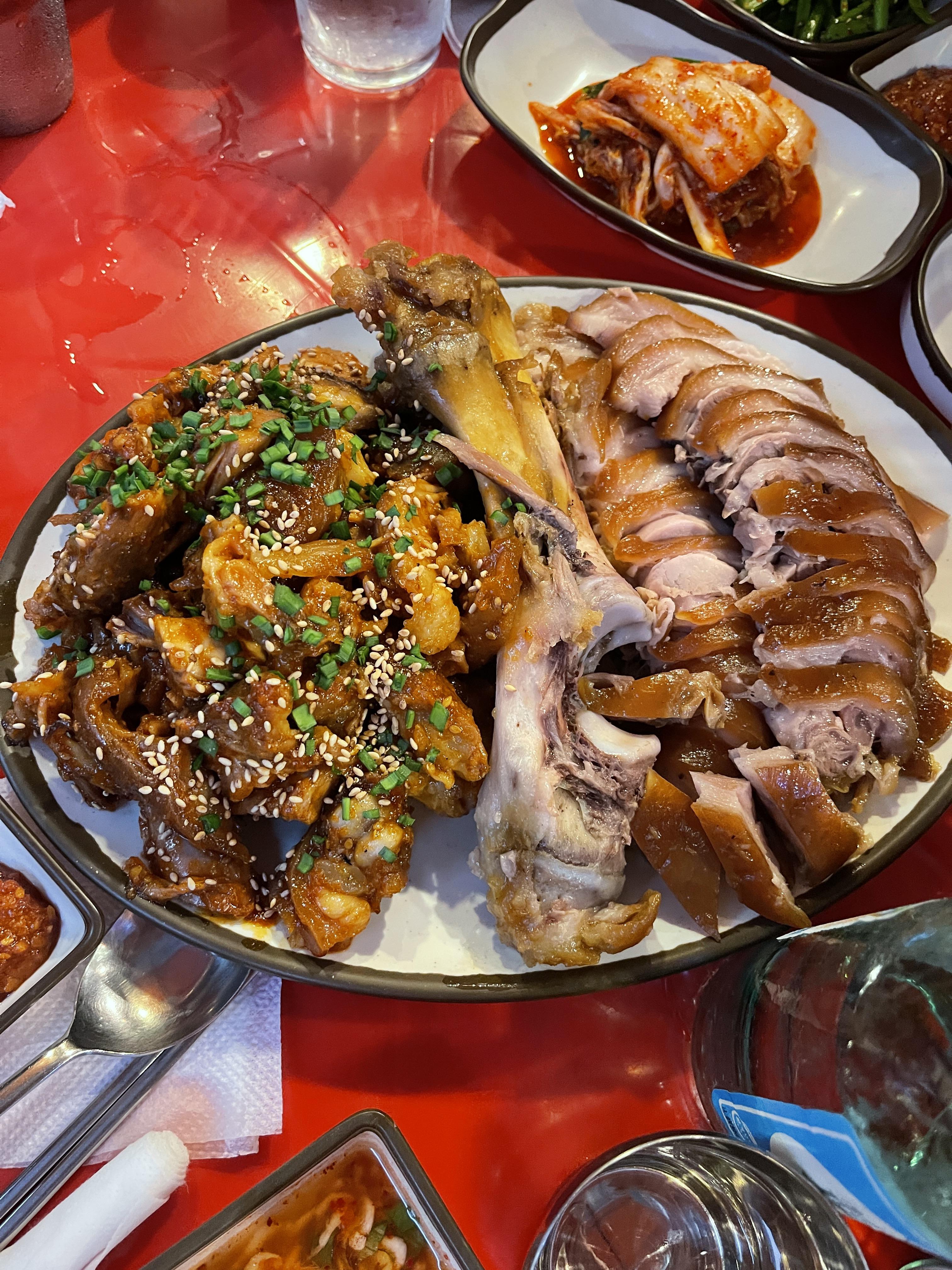 그렇게 도착한 신설동 허브 족발집!! 회식이라 인원이 꽤 되어서 예약을 했었구요~ 테이블 세팅 다 해주셔서 저희는 신설동 허브족발에 들어가자마자 바로 식사를 시작할 수 있었답니다~~!