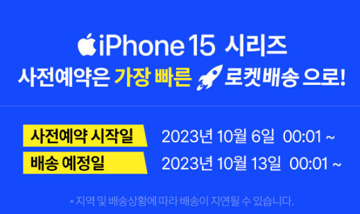 쿠팡은 아이폰이 출시될 때마다 품절대란이 일어나며, 가장 대표적으로 경쟁이 치열한 아이폰 자급제 대표 커머스입니다. 그 이유는 거의 가장 큰 할인 혜택을 제공하였고, 로켓배송으로 정식 배송일인 13일이면 로켓배송으로 하루만에 받아볼 수 있기 때문인데요. 그래서 가장 아이폰15, 아이폰15프로를 해외직구가 아닌 자급제 폰으로 개통을 하였다면 가장 빠르게 받아볼 수 있는 방법이기도 합니다. 하지만 그만큼 경쟁이 정말 치열하고, 인기모델인 아이폰15프로 시리즈와 아이폰15 일반 모델 핑크 같은 경우는 서버가 거의 폭주할 정도로 시작과 동시에 품절이 될 것이라고 예상합니다. 그렇게 인기모델을 빠르게 겟하실 수 있는 주인공이 자신이 될 수도 있기 때문에 도전은 해보셔요!
