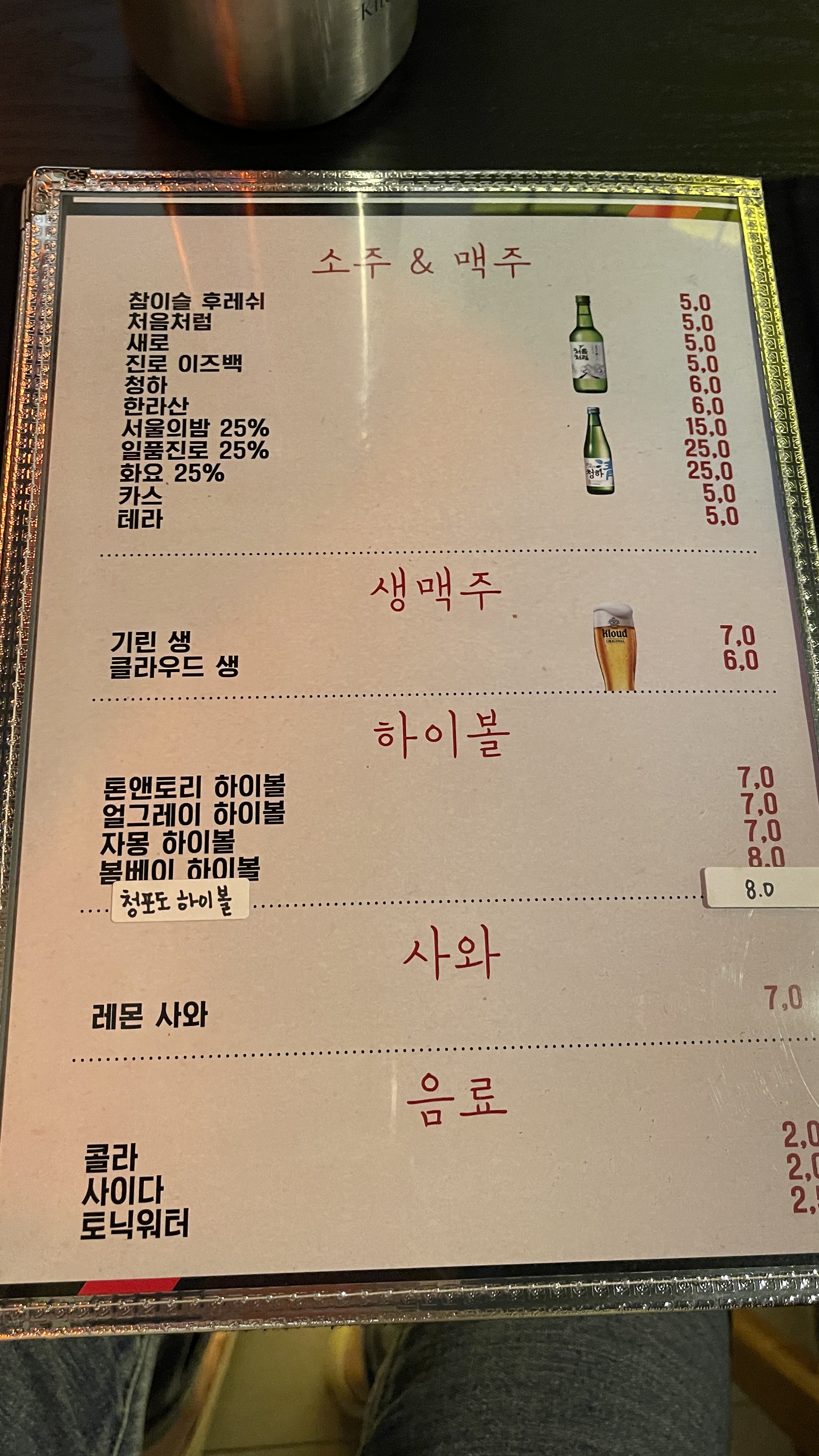또 소주도 종류별로 다 있어서 저희는 진로 제로슈가로 달려달려 또 달려 정신 놓고 마셨더랬죠.