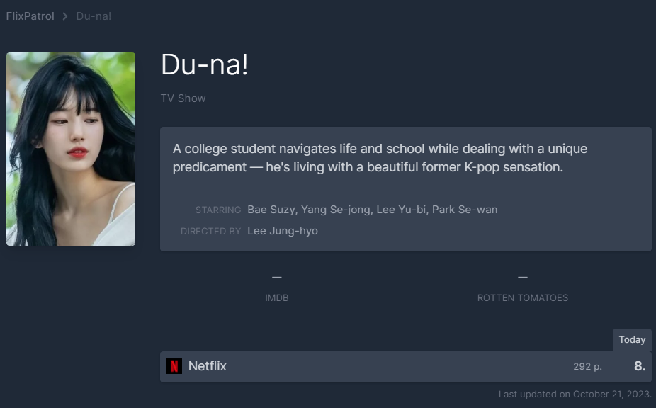 드디어 '이두나!'의 첫날 해외 순위가 해외에서 가장 공신력 있는 OTT사이트 flixpatrol을 통하여 공개되었습니다.