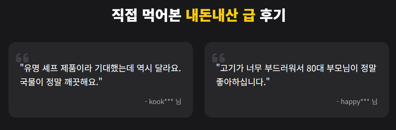 "유명 셰프 제품이라 기대했는데, 역시 국물이 진하고 고기 잡내가 전혀 없어서 놀랐어요." (아이디: kook***)