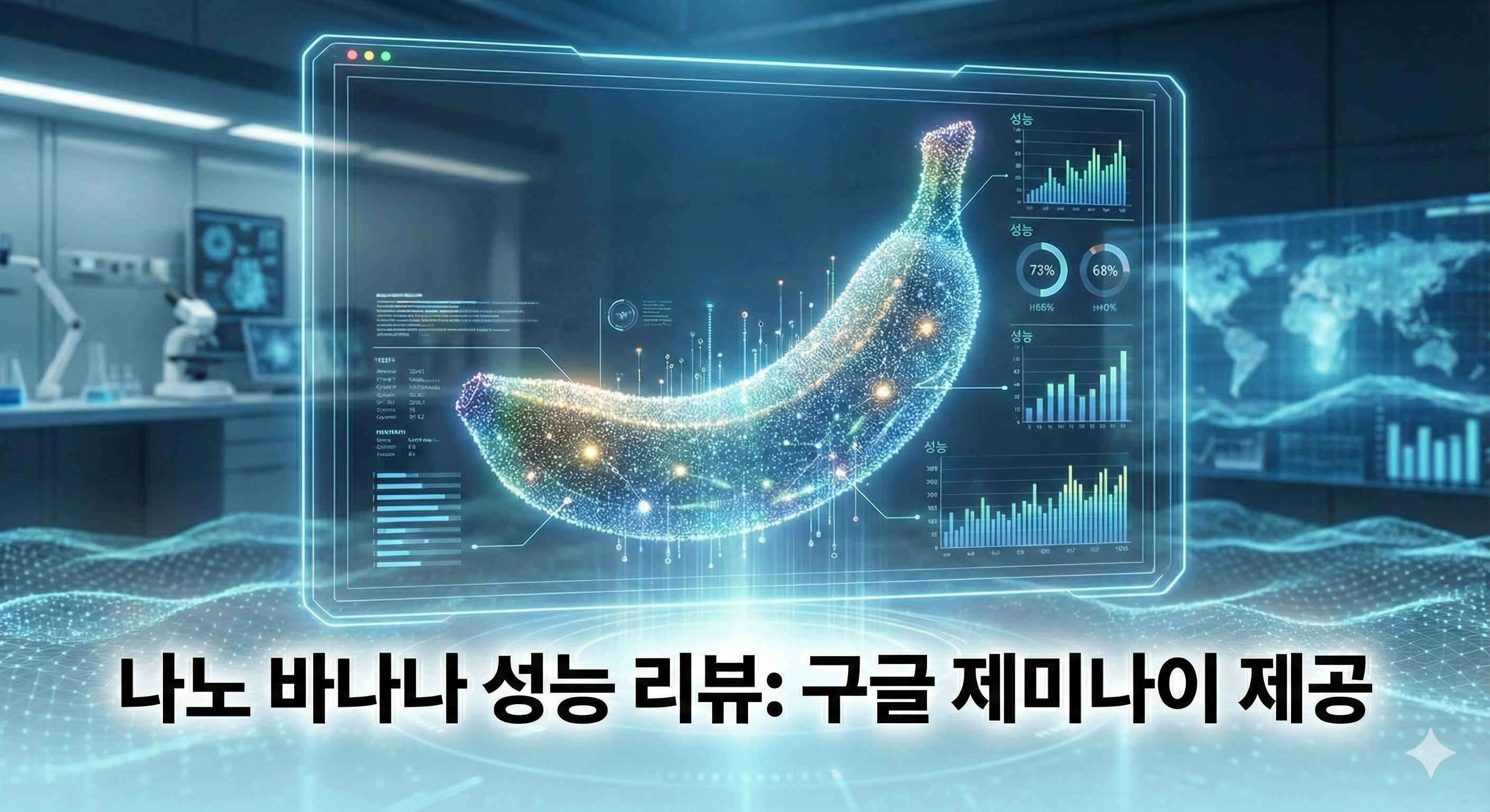 처음 단계에서는 위와 같은 프롬프트를 통해 제미나이 나노바나나에 대한 이 글을 작성하기 위한 메인 이미지 생성을 부탁하였습니다. 그랬더니 처음 나온 이미지는 이러하였습니다.