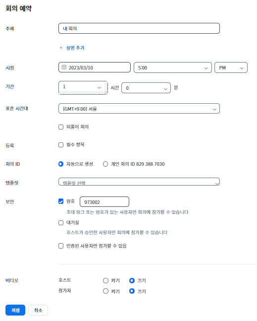 라는 이유 때문입니다. 개인 회의 ID를 사용을 하여 줌 회의를 예약하신다면 줌 주소 전달 및 회의 운영을 잘 해내실 수 있으실 겁니다^^