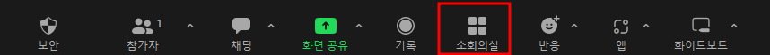 그리고 마지막으로 줌에서 유용한 기능을 말씀드리자면 소그룹 나누기라는 기능이 있는데요. 소그룹으로 나눠 토의를 진행하는 일정에서 반드시 필요로 하는 기능입니다.