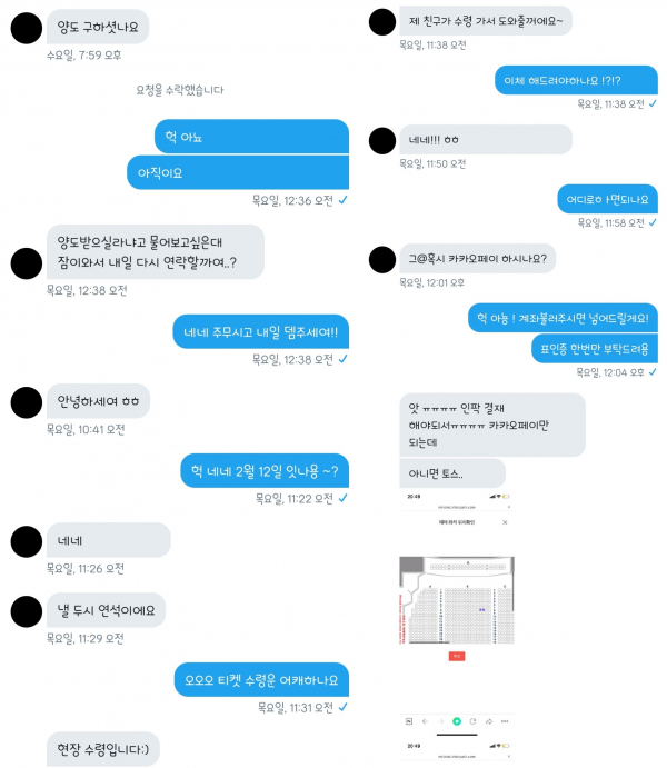 친구와의 티켓 배정을 위한 메시지 주고받기.