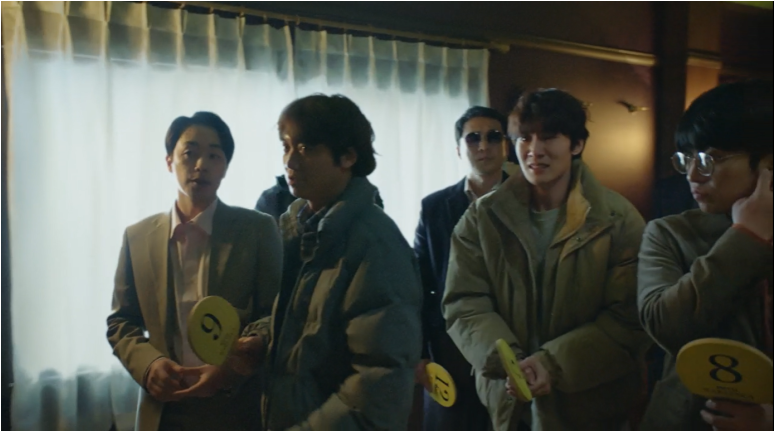 그렇게 중년남자는 조직원들에게 붙잡혀 신체매매 경매에 붙혀지게 되고 이 남자가 바로 진선규입니다. 그리고 그는 형사라는 것이 밝혀지며 행동대인 여고생 전종서는 성매매 현장에 있던 여고생에서 경매사로 변신하여 장률이 참여한 신장매매 경매에서 가격을 올려나가며 경매를 진행하게 됩니다.