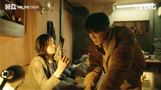 그러던 중 호텔 건물은 붕괴사고로 난장판이 되고, 사람들은 각각의 장소로 흩어지게 됩니다. 전종서는 생각보다 여자 동료를 소중히 여기는 마음을 가지고 있으면서도 생존을 위해서는 온갖 나쁜 짓을 서슴치 않는 모습을 보여줍니다. 위기에 처했을 때 진선규를 풀어주게 하여 이용해먹고, 필요할 때 진선규를 또 이용해 먹는 모습을 극중 내내 보여줍니다.