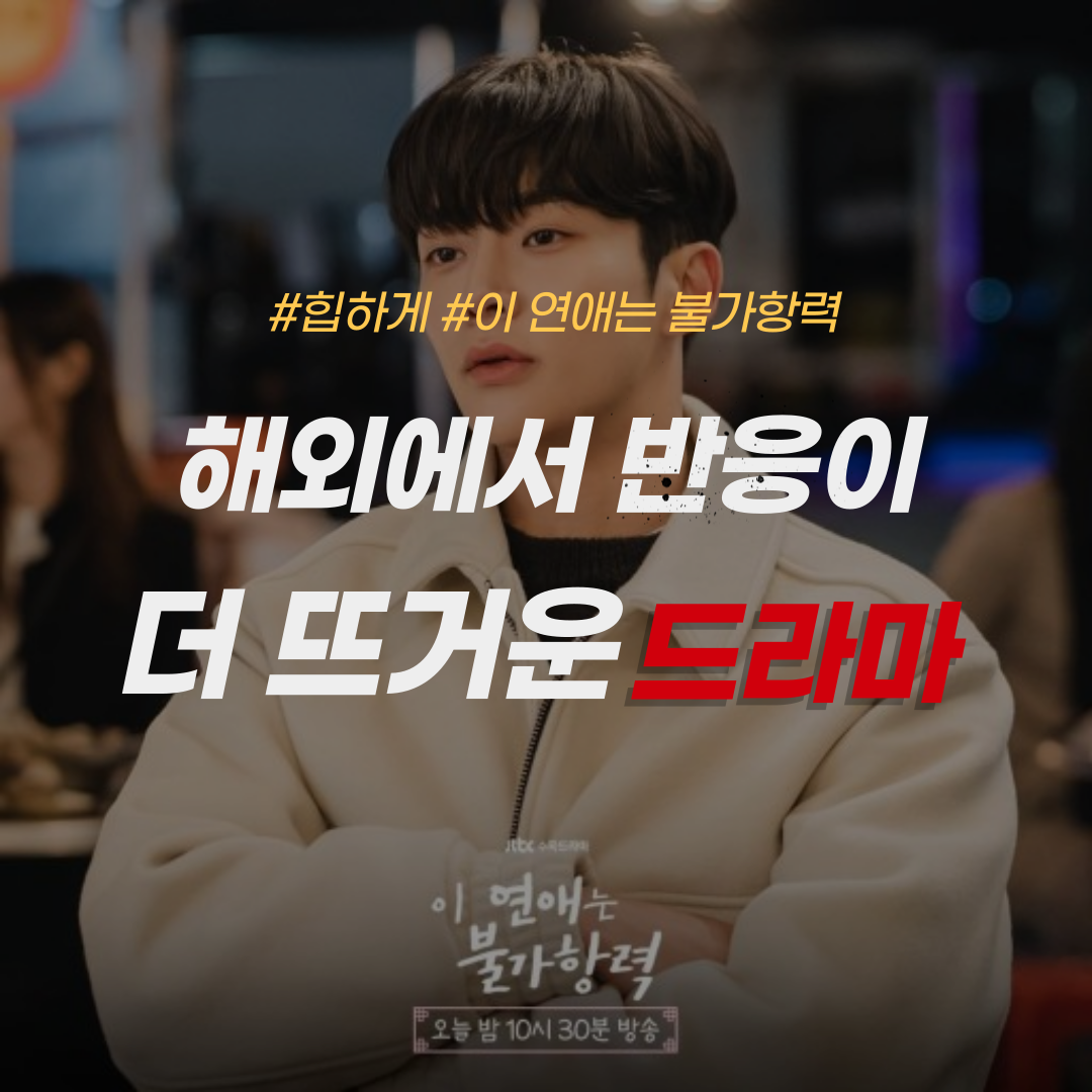힙하게가 16회로 마무리 되고, 이 연애는 불가항력 또한 곧 마무리가 되는데요. 이 두 드라마의 특징을 아시나요? 바로 국내에서보다 해외에서 더 핫한 반응을 얻고 있다는 점입니다. 둘 다 넷플릭스에 올라가 있기 때문에 해외 반응을 즉각 확인할 수 있는데요. 힙하게와 이 연애는 불가항력이 해외에서 어떤 반응을 얻고 있는지에 대해 알아보겠습니다.