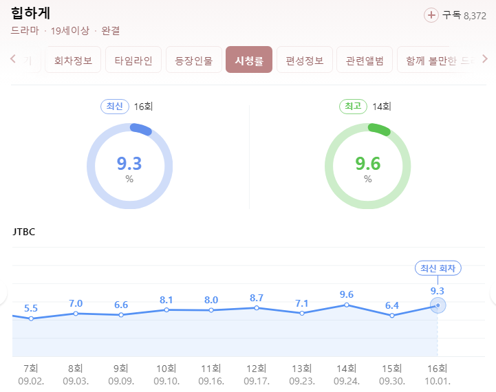 힙하게는 종영 이후 오히려 계속하여 순위가 반등하여 현재 9위에 랭크되어 있습니다. 나라별로 살펴보면 꾸준히 순위권에 랭크하고 있는 것은 아시아 지역이고, 힙하게가 공개되는 토요일 일요일 시점에 세계적으로 그래도 계속 TOP10에 들면서 이뤄낸 성과라고 할 수 있겠는데요. 국내에서의 시청률 또한 상승곡선을 그리며, 계속하여 힙하게의 시청자들이 이 드라마의 진가를 발견하고 꾸준히 시청자가 유입되었음이 보입니다. 자체시청률 최고 10%까지는 넘기지는 못하였지만 9.6%까지 시청률을 찍으며 한지민, 이민기가 보여준 힙하게라는 작품이 주말 늦은 밤 방영에 19세 관람가인 핸디캡을 가지고도 얼마나 좋은 작품인지를 보여주는 결과입니다.