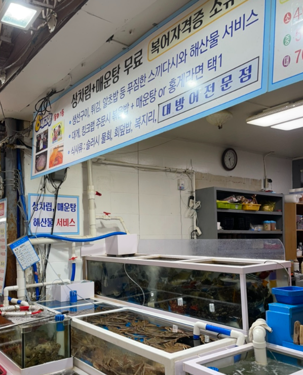 신선한 회와 대게가 되는 곳들이 즐비하니 맘껏 해산물을 즐기시길 바래요!