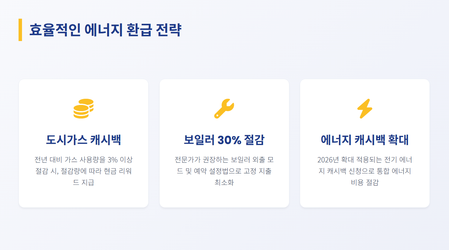 작년보다 가스 사용량을 줄이면 현금으로 돌려주는 도시가스 캐시백과 전문가가 권장하는 보일러 30% 절감 설정법을 확인하세요.