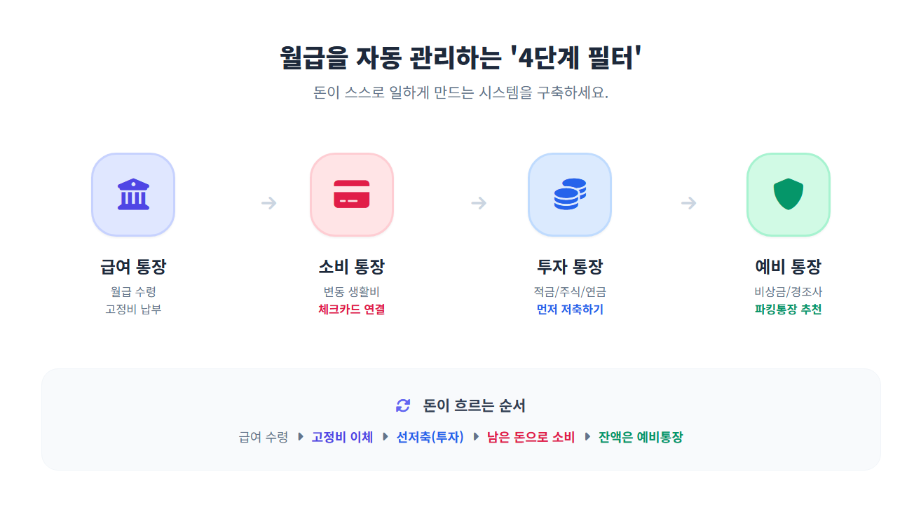 | ③ 예비 통장 | 경조사, 수리비 등 비상금 (파킹통장 추천) |