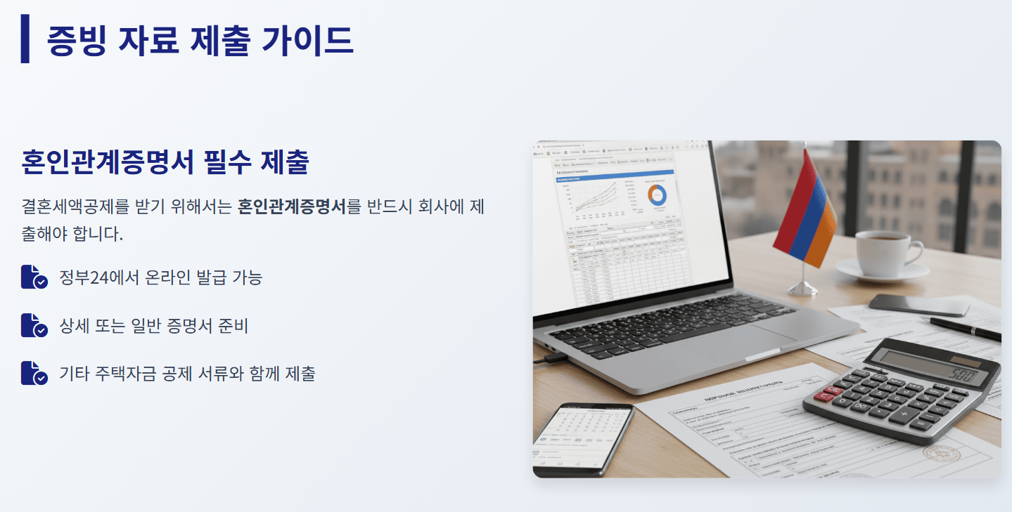 ✔ 신청 방법: 연말정산 시 '혼인관계증명서'를 회사에 제출하면 세액에서 직접 차감됩니다.