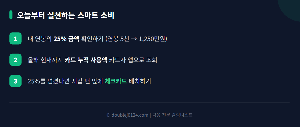- 25%를 넘겼다면? 지갑 앞쪽에 체크카드 꺼내두기!