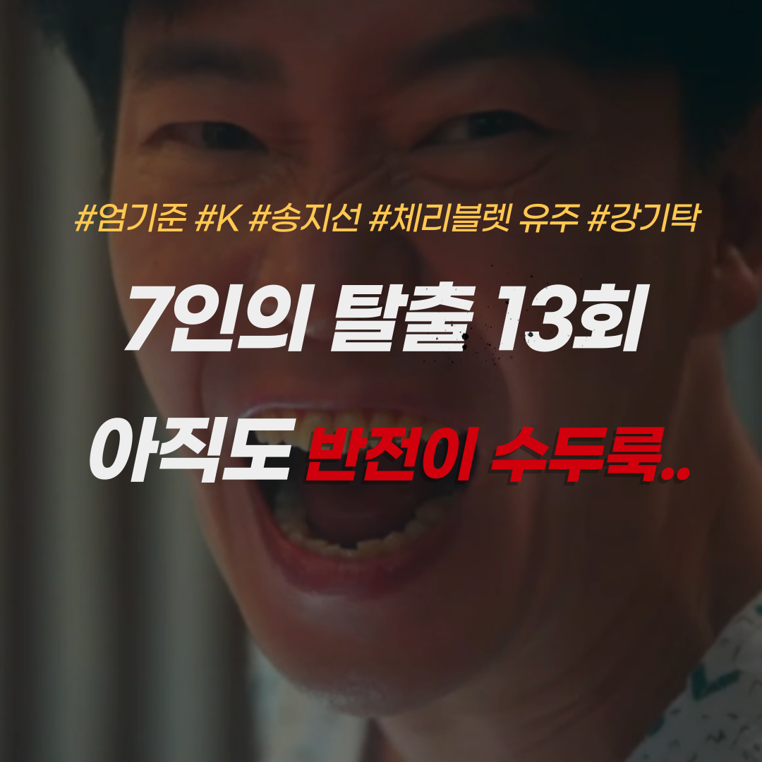 그런 강기탁이 이제서야 무인도에 갇힌 진짜 이휘소(민영기)를 만나게 되었는데요. 7인의 탈출은 반전에 반전에 반전을 계속 거듭하기 때문에 또 무슨 이야기로 흘러갈지는 모르겠지만, 제발 강기탁 만큼은 똑바로 선한 편에서 싸워주는 인물로 계속 남았으면 좋겠네요. 이휘소 이제 쫌 진짜 방다미 복수 좀 제대로 해봅시다. 강기탁이랑 드디어 만났으니.